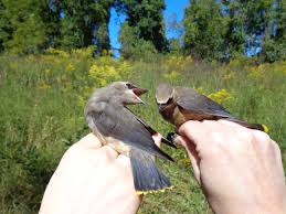 Cedar Waxwing siblings captured and banded in Willistown, PA. Photo Credit: Heather Kostick. Many species of birds, including Cedar Waxwings, are affected by wind turbines but that doesn’t mean we should totally stop using the technology